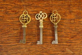 in twee verdelingen. De bovenkast met drie deuren, de onderkast met twee laden en twee deuren. Het geheel versierd met coromandelhouten geometrische motieven. De originele sleutels met monogram BH