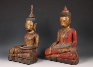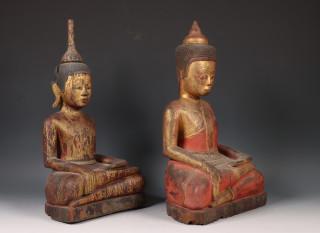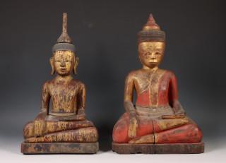 Brima, twee gestoken houten deels vergulde Boeddha's