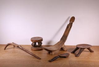 A collection of five West African wooden seats;
