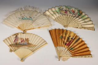 Drie papieren waaiers en één veren waaier, 19e eeuw,