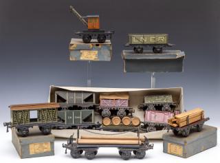 Bing, tien wagons en kraanwagen, ca. 1925.