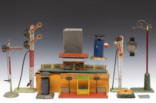 Mogelijk Bing, diverse trein toebehoren, ca. 1925-1930
