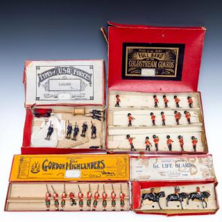 Britain trade mark, vier sets tinnen soldaatjes, ca. 1930.
