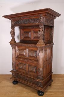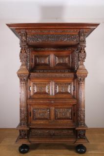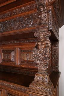 Rijk gestoken Vlaamse eikenhouten beeldenkast in Renaissance-stijl, 17e/18e eeuw.
