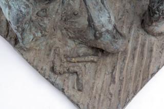 Peter Leijenaar (1923), groen gepatineerd bronzen sculptuur 'Op weg'.