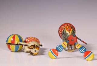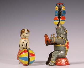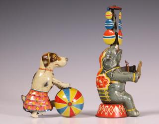 Duitsland, twee US zone stuks speelgoed, hond en olifant.