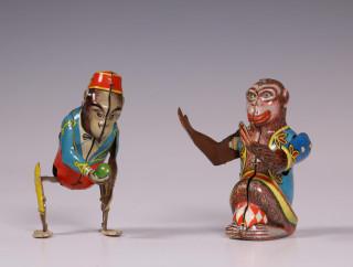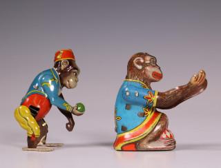 Duitsland, US zone, twee stuks speelgoed, apen.