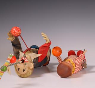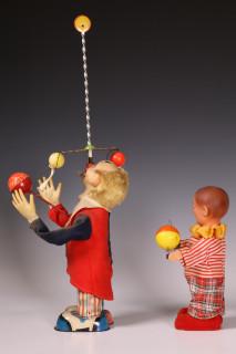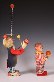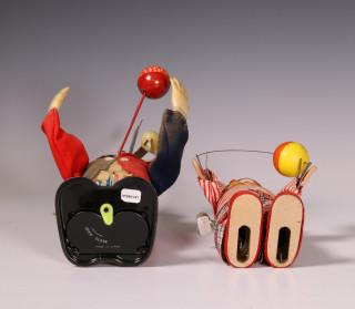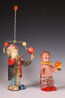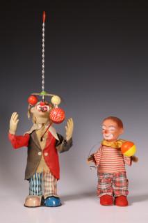Twee stuks speelgoed, clowns.