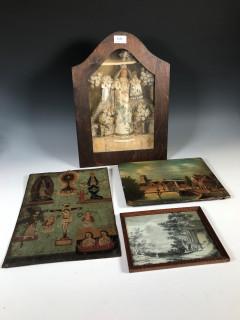 Diverse (religieuze) schilderingen en twee reliek schrijnen.