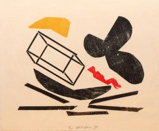 tweemaal houtsnede, gesign., ca. 70 x 90 cm.