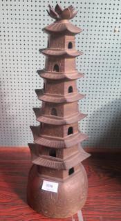 China, koperen gegoten vormstuk Pagode, 20e eeuw