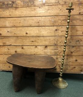Senufo kruk en hoge koperen kandelaar