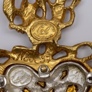 Christian Lacroix, goud- met zilverkleurige broche, Costume Jewellery.