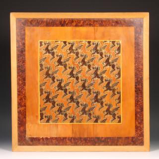 Ingelegd houten paneel in Escher stijl, wederkerig patroon van Pegasus.
