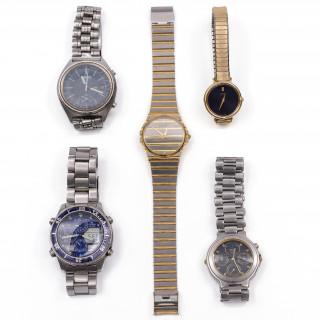 Seiko, three steel wristwatches, two quartz and one automatic. Hereby two steel wristwatches, quartz, one Piaget and one Citizen (all with significant signs of wear).