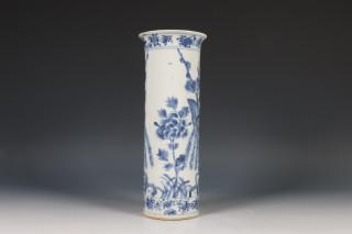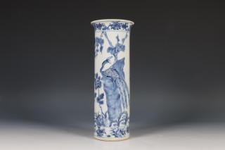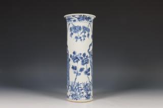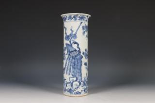 China, blauw-wit porseleinen cilindrische vaas, 19e eeuw,