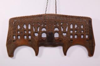 Spanje, notenhouten opengewerkt ossenschot, gedateerd 1903