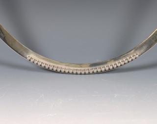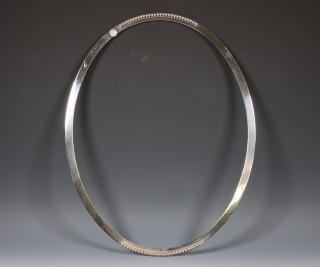 ovale vorm met parelstreng versieringen aan weerszijden ( spiegel en standaard ontbreken ), mt. J J lettermonogram (niet geïdentificeerd ) fabrikant/winkelier Wolfers Frères, Brussel ca. 1920, genummerd 148, 2e gehalte