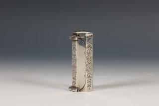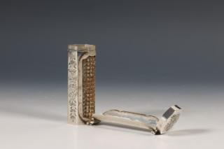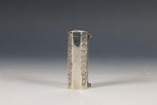 achthoekig model met gegraveerde decoratie bloem- en bladmotieven, uitklapbaar, mt. GK niet geïdentificeerd, 2e gehalte