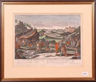 Hierbij gravure door G.B. Probst; Jacob komt tot zijnen zoon in Egypte