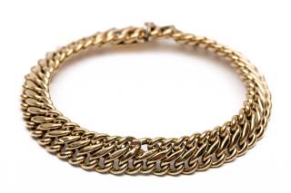 14 k. gold link bracelet made up of a double curb link (dents, repairs)