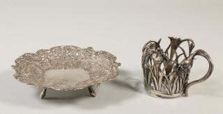 waarbij Art Deco, en China, ajour ronde houder met water en irisplanten, gemerkt ca. 1900