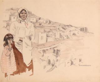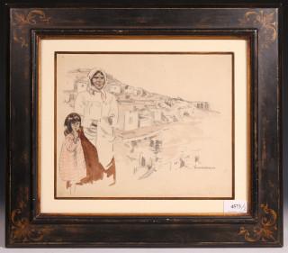 tweemaal potlood en aquarel, één gesigneerd, 25 x 20 en 28 x 23 cm.