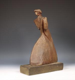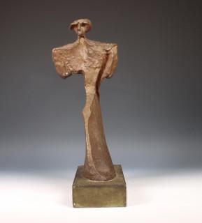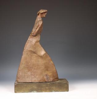 Gestileerd bronzen sculptuur van figuur in lang gewaad, 20e eeuw;