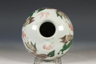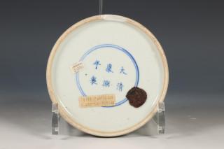 het ronde vat gedecoreerd met qilin, de onderzijde met apocrief Kangxi merk (chip aan voetrand)