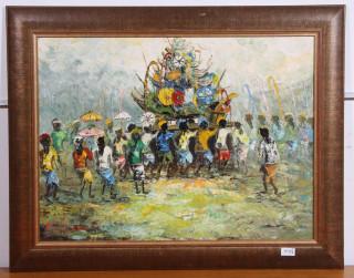 Figuren bij een tempel. Hierbij Indonesische school, figuren