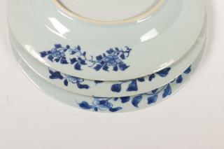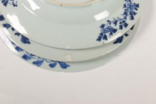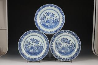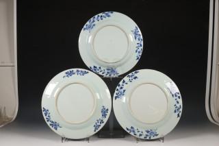 China, set van drie blauw-wit porseleinen borden, Qianlong periode (1736-1795),