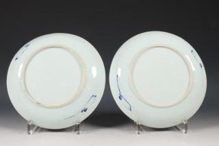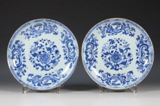 China, paar blauw-wit porseleinen 'Madame de Pompadour' borden, Qianlong periode (1736-1795),