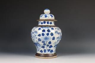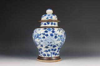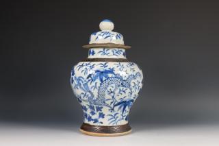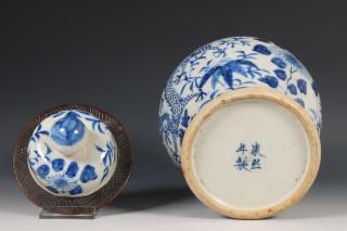 China, blauw-wit porseleinen dekselpot, begin 20e eeuw,