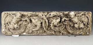 Gipsen reliëf ornament met decoratie van putti en draken.