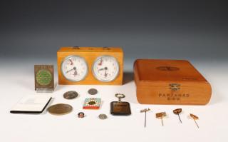 Gegeven aan G. Kapsenberg. W.o. penning IBM schaaktoernooi Max Euwe 1976 en analoge schaakklok.