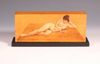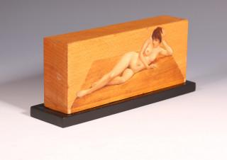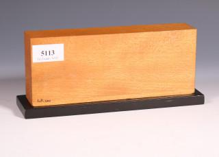 houten blok, gesign. onderzijde, 2003, 8,5 x 21 x 4 cm.