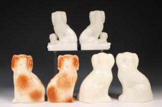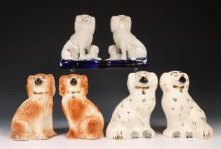 Staffordshire, drie paar aardewerk hondjes, 19e eeuw;