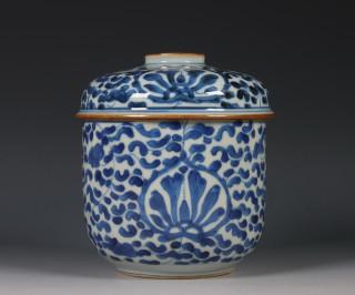 China, blauw-wit porseleinen dekselpot, 18e eeuw,
