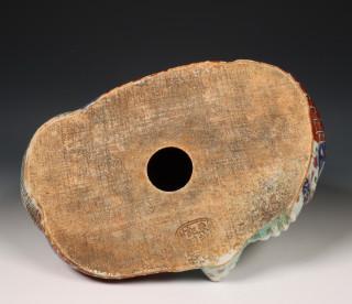 zittend met gebedssnoer en zak in zijn handen, onderzijde met zegelmerk , op houten sokkel (haarlijn)