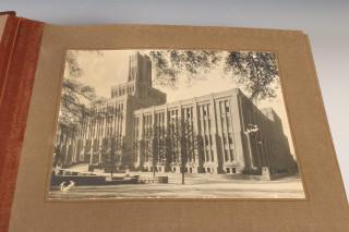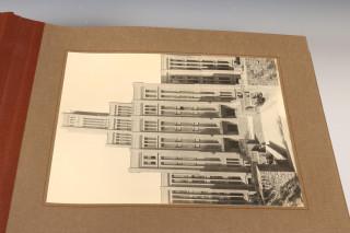 Leer gebonden met talrijke originele zwart wit foto's van het gebouw, exterieur en interieur. Hierbij handgeschreven brief van Bouwraad, Utrechtsch Kunstverbond aan van Heukelom, wegens bekroning door de raad voor het ontwerp, gedateerd 30 mei 1922.