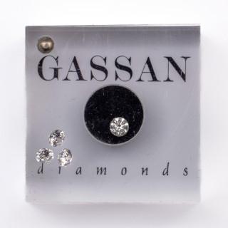 Eén 0.12 ct. , kleur F-G, zuiverheid SI, in een doosje en met met een certificaat van Gassan Diamonds en drie losse briljant geslepen diamanten van elk 0.10 ct., in een zakje van Gassan.