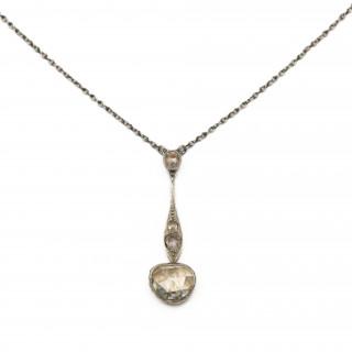 onderaan een druppelvormige hanger, bezet met roosgeslepen diamant waaronder een hartvormige van ca. 0.50 ct.