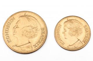 Golden ten and five guilder coin. Both with Beatrix 1980.