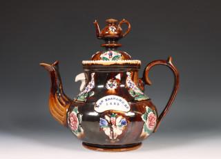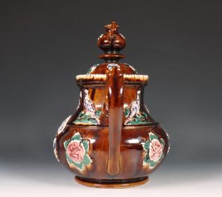 Engeland, bruin aardewerk kapitale theepot, 19e eeuw,