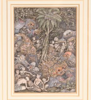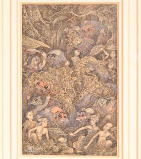 driemaal inkt en aquarel, 12 x 7,5 cm.