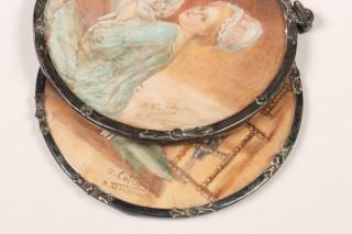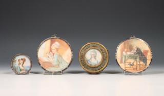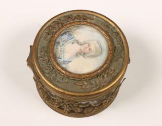 Gesigneerd J. Cotte. Hierbij een koperen met glazen dekseldoosje met portret miniatuur in de deksel Louis XVI stijl.
