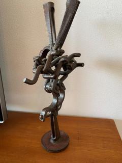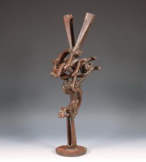 IJzeren sculptuur gemaakt van o.a. draadijzer. Op ronde voet.
