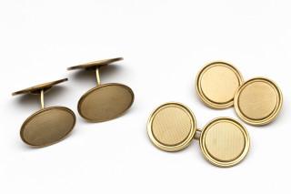 14 kt. gold cufflinks, jumelles. Hereby a second pair of below legal gold alloy