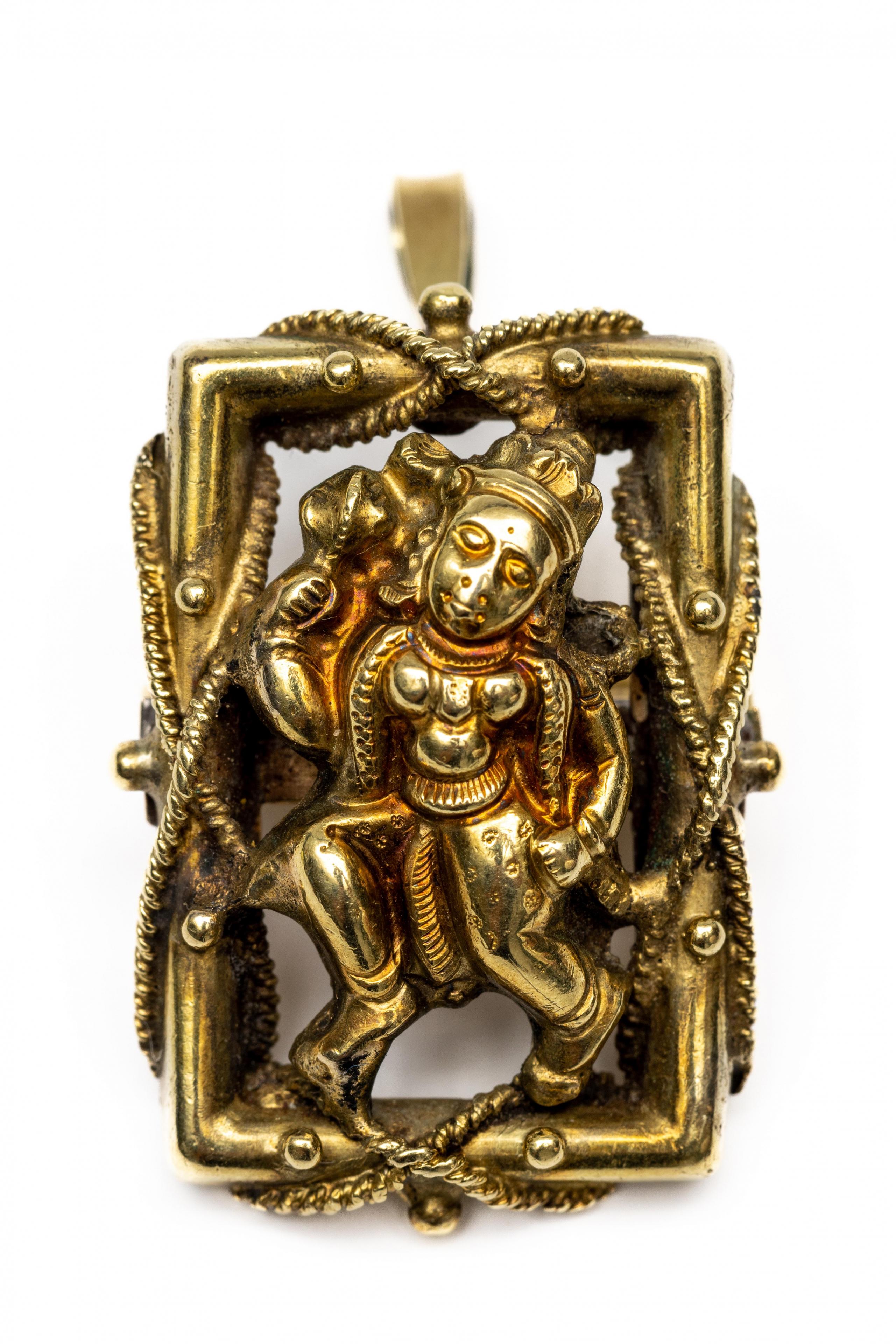 14 k. Gold brooch, also pendant, depicting a dancing dakini (pewter)