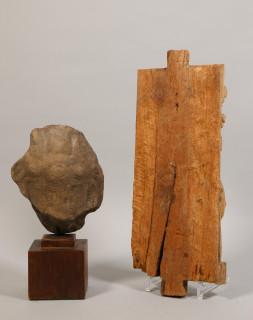 Cambodja, Boeddha hoofd modern en India, gestoken houten paneel